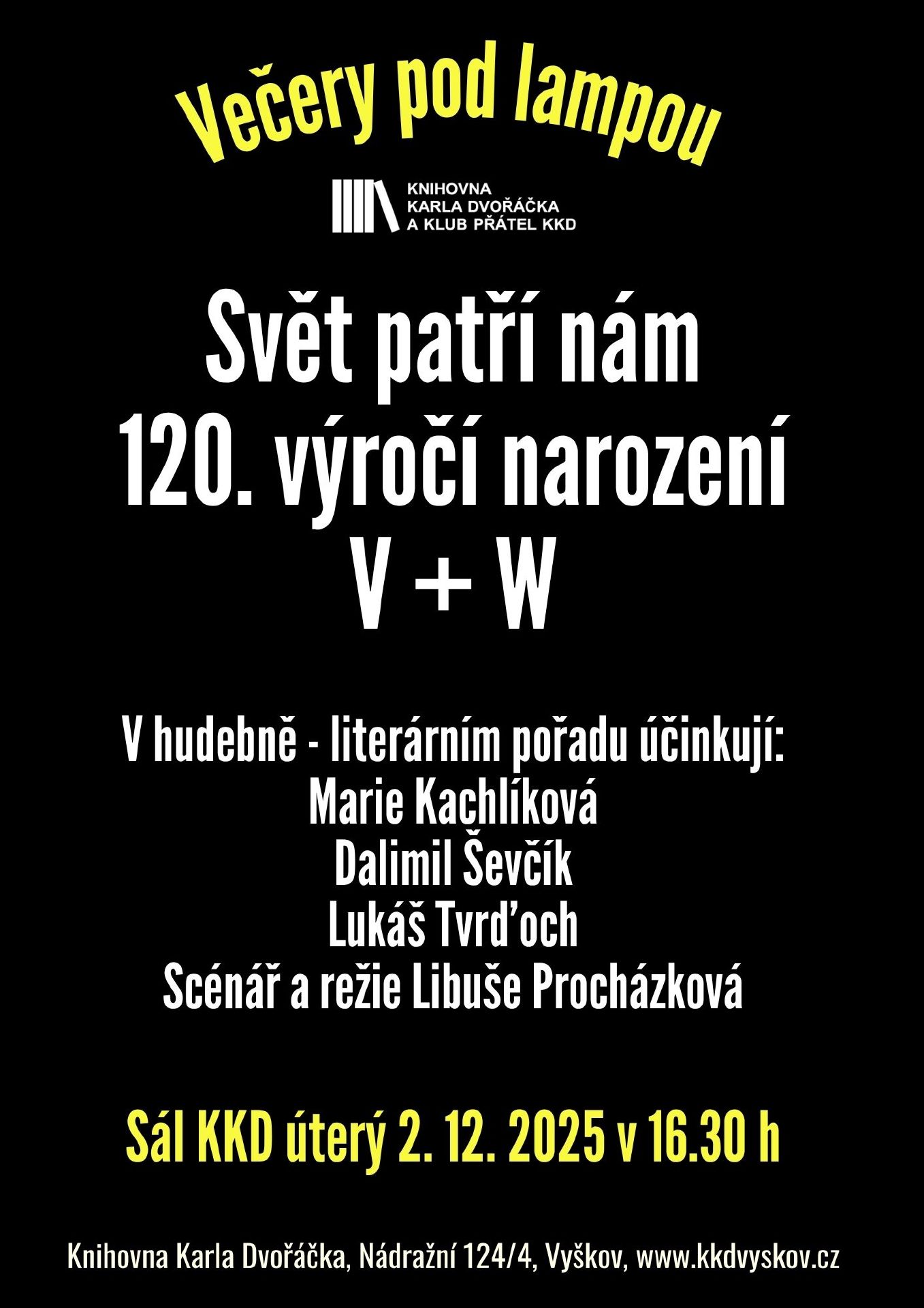 Literárně – hudební pořad. Účinkují Marie Kachlíková, Dalimil Ševčík, Lukáš Tvrďoch, scénář a režie Libuše Procházková.
