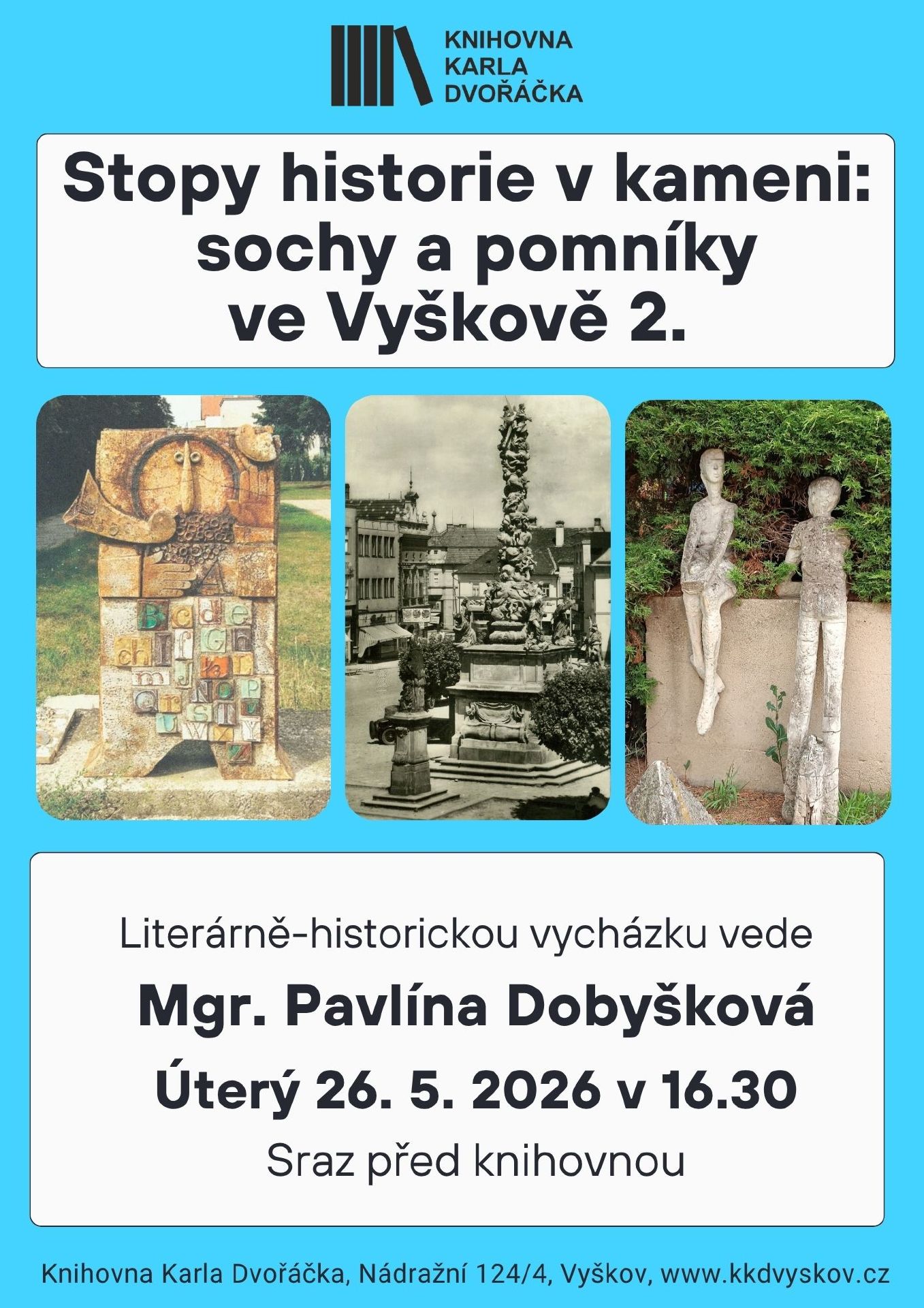 Literárně-historickou vycházku vede Mgr. Pavlína Dobyšková. Sraz před knihovnou. Potřetí nám snad už bude počasí přát...