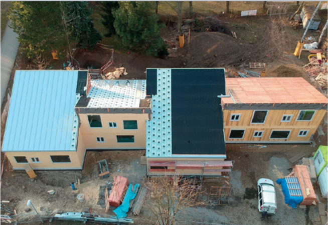 V polovině května byla už téměř celá budova obložena dřevem a hlavní práce se přesunuly do vnitřních prostor. „Nyní nás čeká dokončení instalačních prací, pokládání obkladů a dlažby. Pokud se podaří dodávka materiálů ve sjednaných termínech, dokončíme klubovnu pravděpodobně o dva měsíce dřív, než bylo v plánu,“ doufá Michal Albrecht z vedení stavební společnosti Quick Building, která stavbu realizuje.