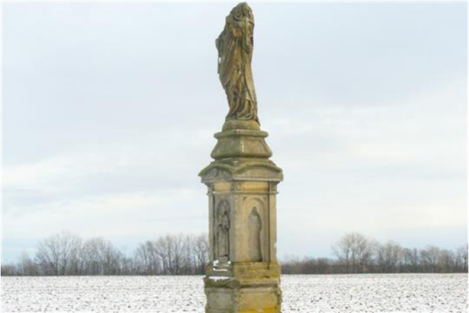 Značně poškozenou sochu Panny Marie z polí nad Dědicemi čeká restaurování