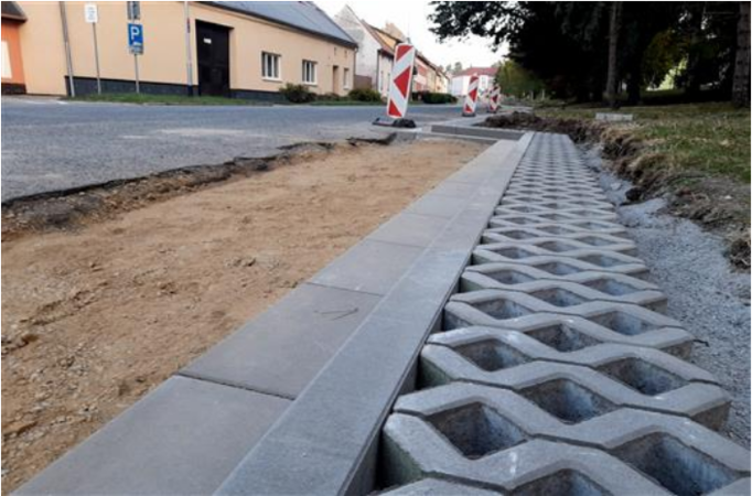 Doplnil, že v celé délce nebude chybět silniční obrubník. Směrem do zeleně dělníci položí pás betonových zatravňovacích tvárnic. Na něj bude navazovat úprava terénu vysvahováním.