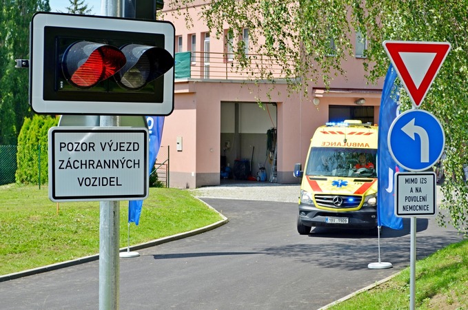 Nová plocha vznikla v zeleném pásu nemocničního areálu u komunikace vedoucí k výjezdové základně. Právě objekt zdravotnické záchranné služby se dočkal nového sjezdu s výstražnými světly. „Umístěná jsou při výjezdu z nového parkoviště a v obou směrech v Purkyňově ulici. Dosud nebyla přednost sanitek z areálové komunikace při někdejším vjezdu na parkoviště a na hlavní silnici nijak zajištěna,“ připomněl starosta Vyškova Karel Jurka.