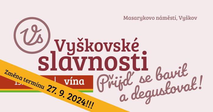 Cimbálová muzika a víno. Finále Vyškovských slavností je naplánované na pátek 27. září. Po květnových Slavnostech piva a červnových Slavnostech jídla přicházejí Slavnosti vína. Konat se budou od 12.00 do 22.00 hodin na Masarykově náměstí.